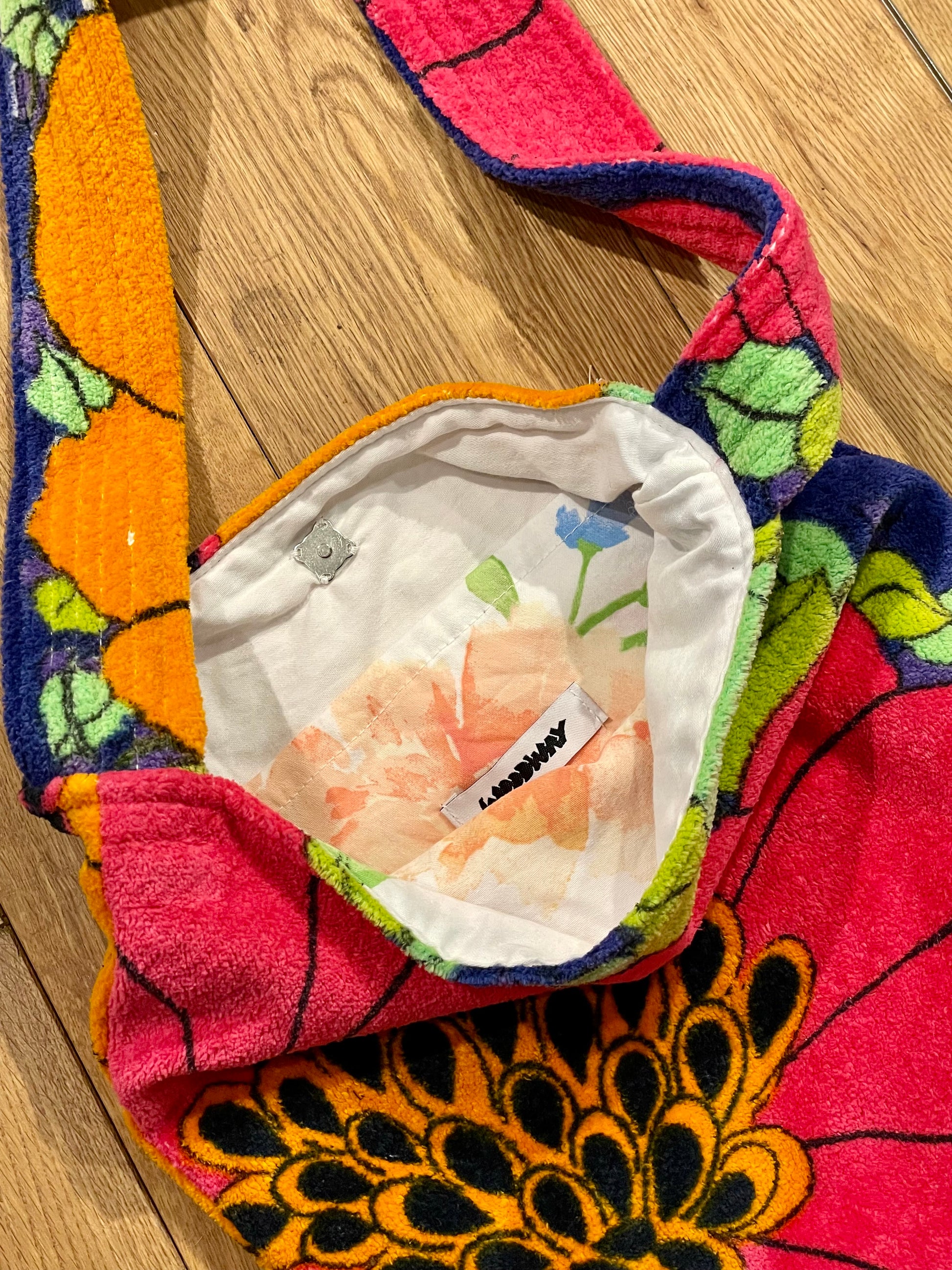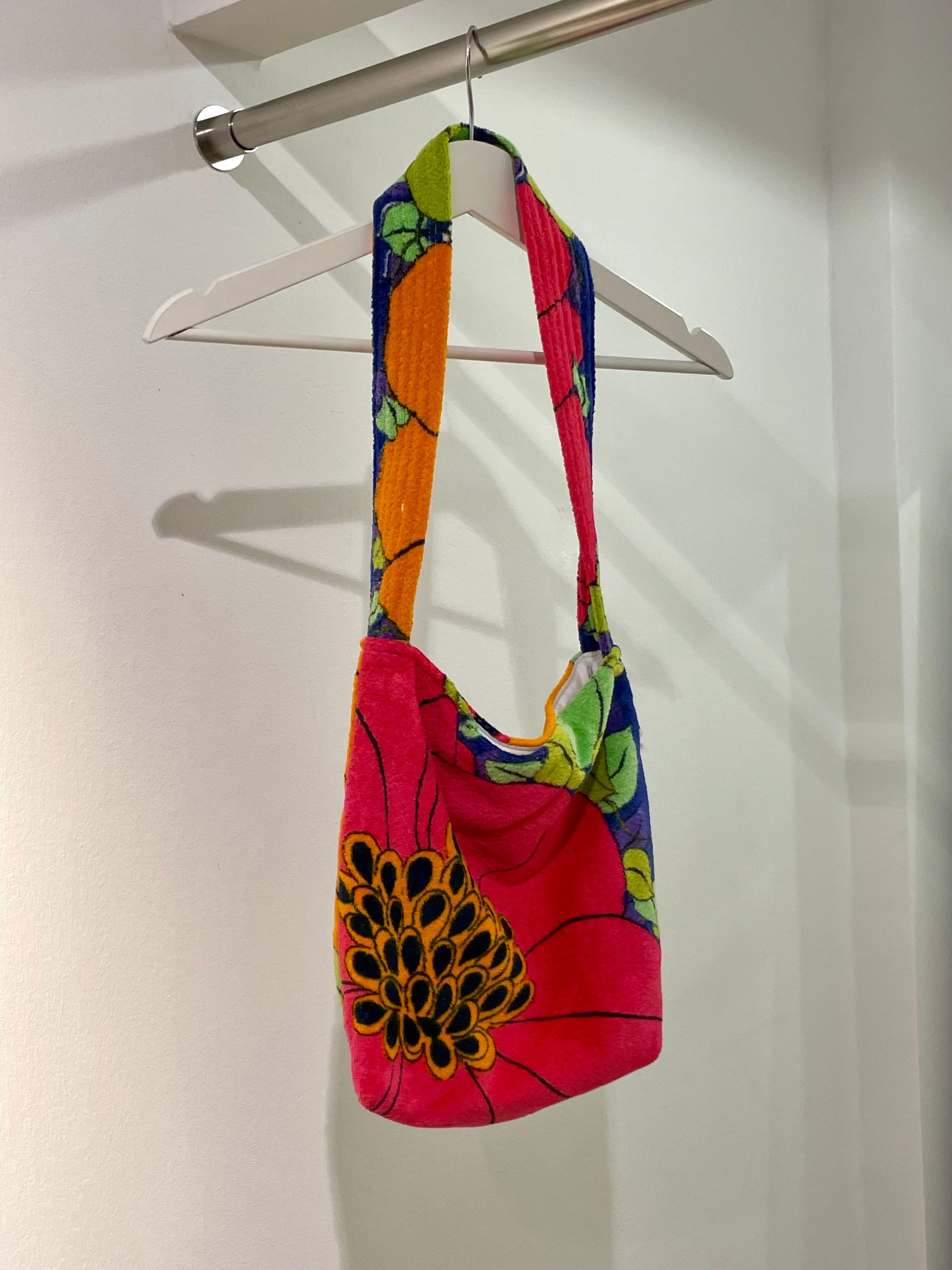 ✿ Schultertasche aus Vintage Frottee, Verschluss Magnetdruckknopf, Cross-body tragbar, kleine Innentasche