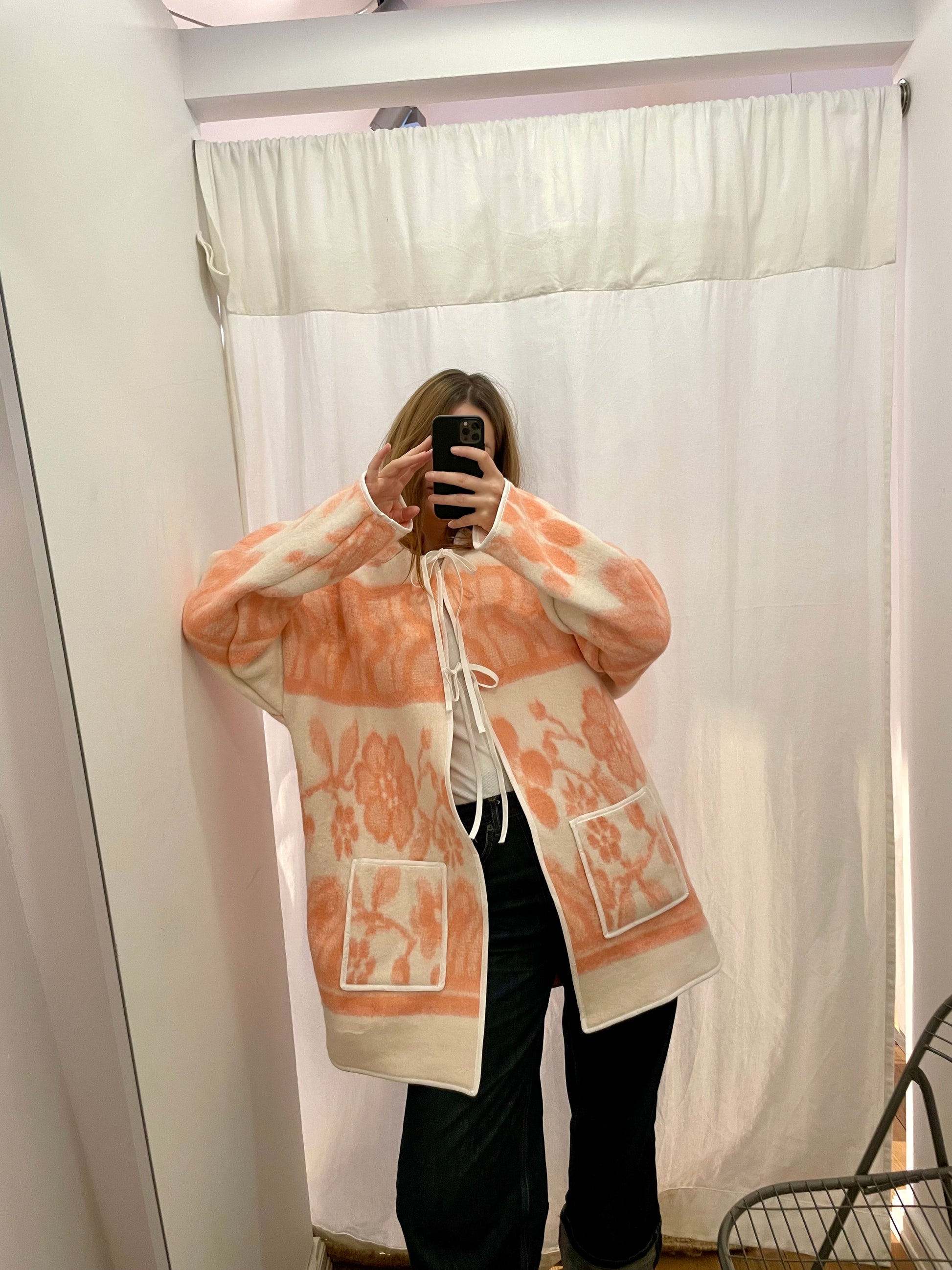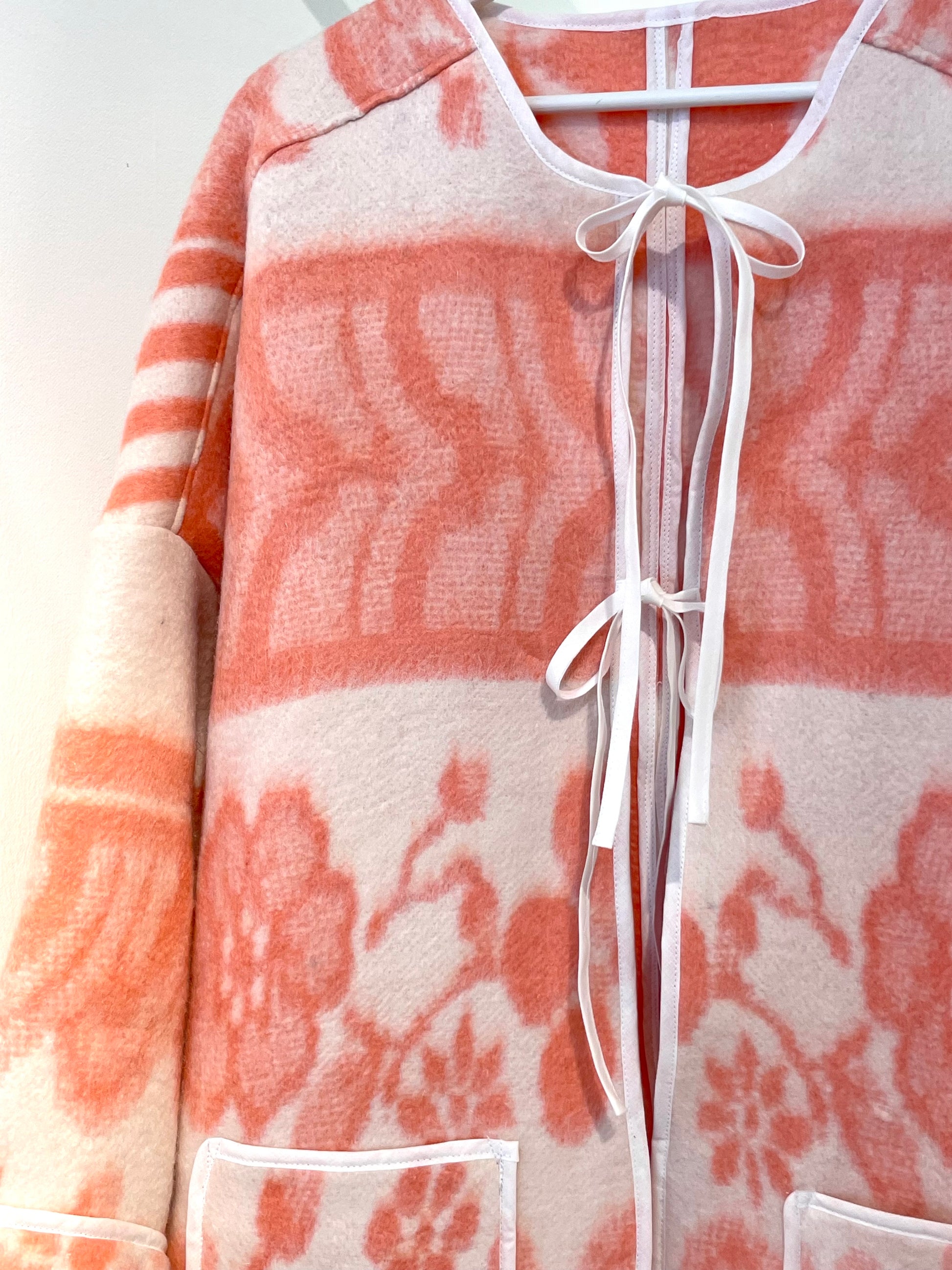 ✿ upgecycelt aus einer Vintage Decke, 100% Wolle, Schließung über zwei Schleifen