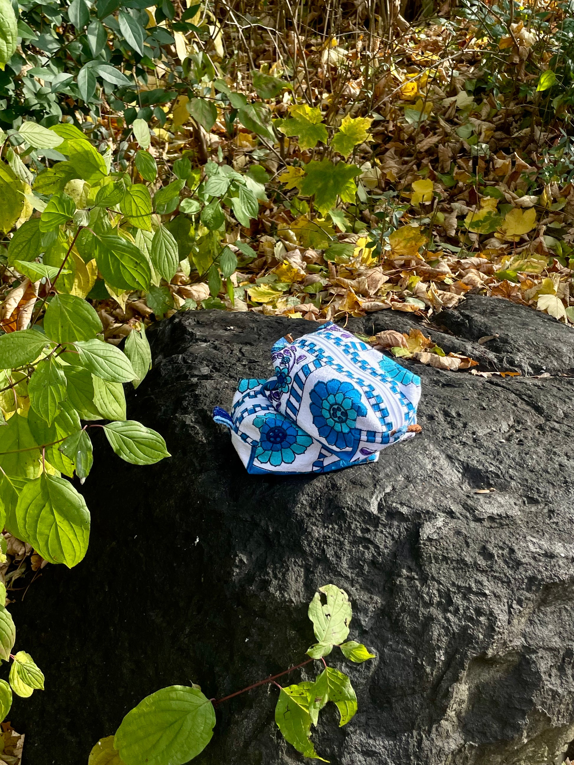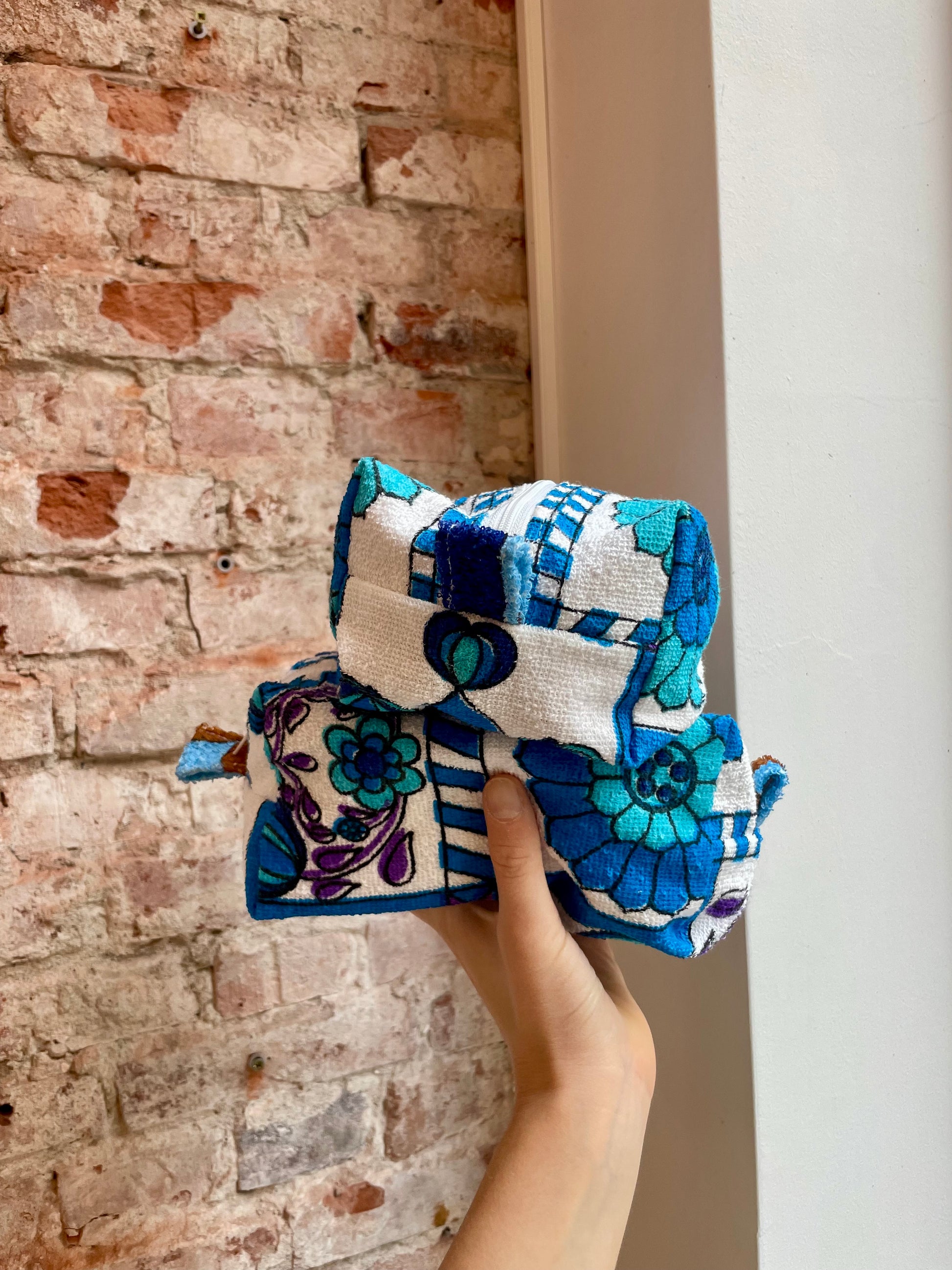 Alle Stoffe sind vorgewaschene Vintage-Materialien. Für Langlebigkeit empfehlen wir die Wäsche per Hand. Wenn du die Tasche in der Waschmaschine waschen möchtest, empfehlen wir die Wäsche in einem Wäschesack, um zu vermeiden, dass das Frottee in Kontakt mit scharfen Gegenständen kommt.