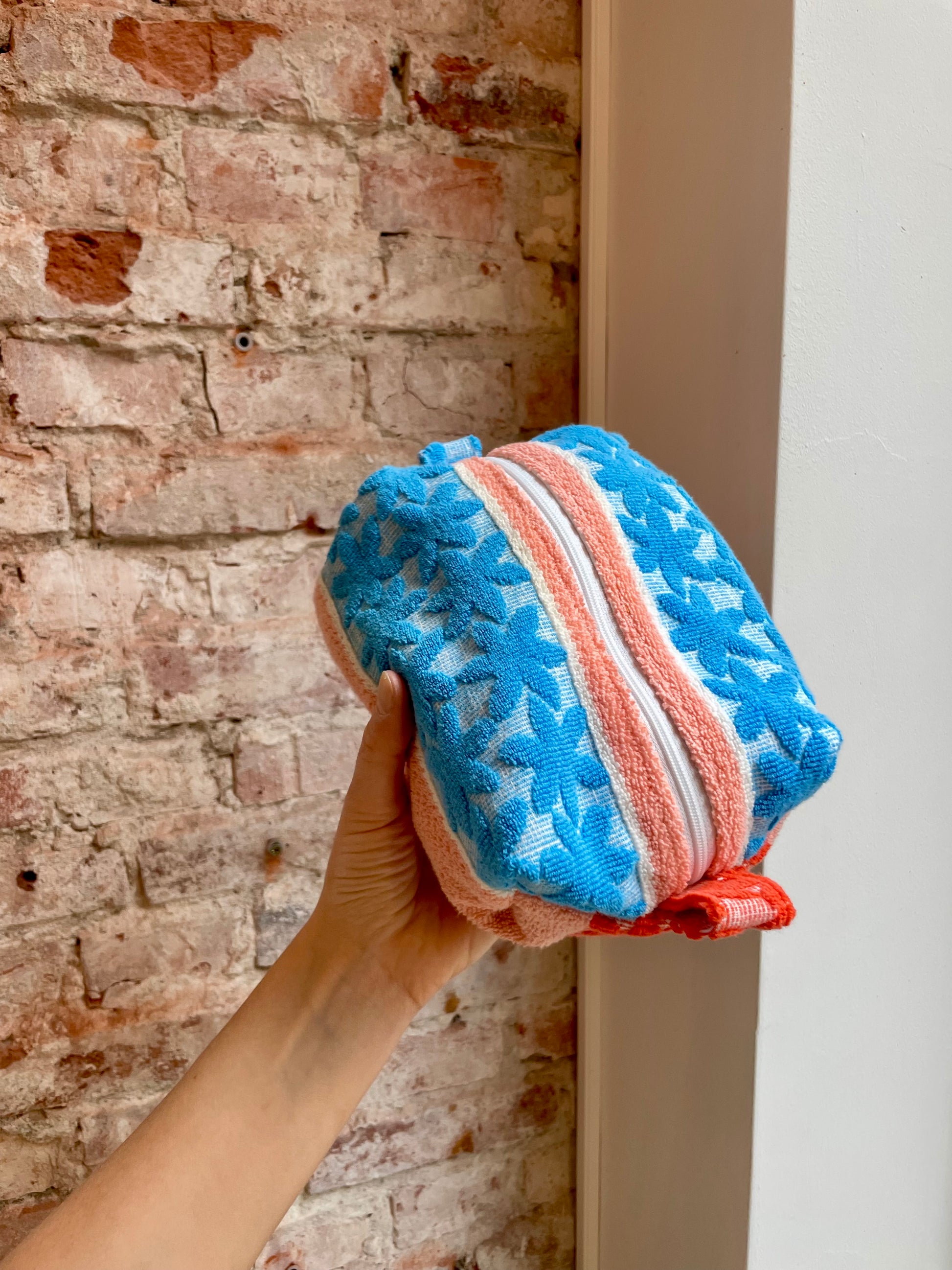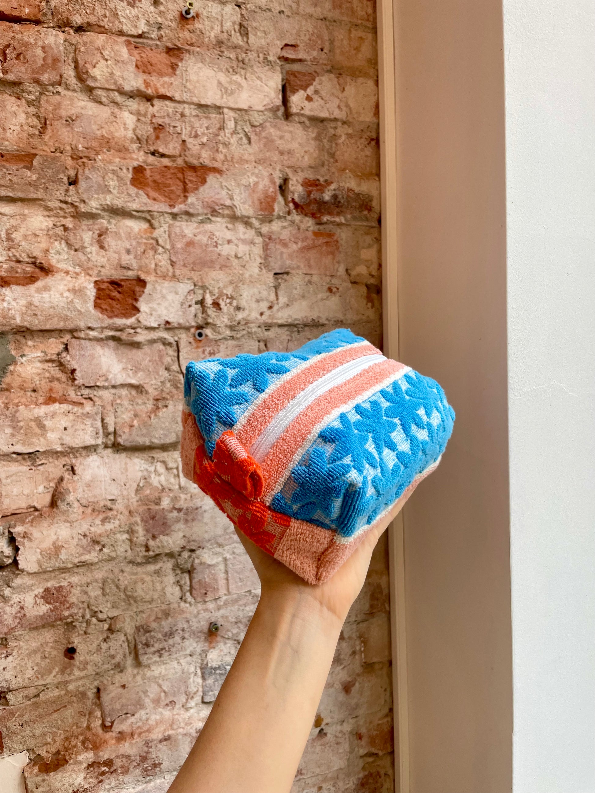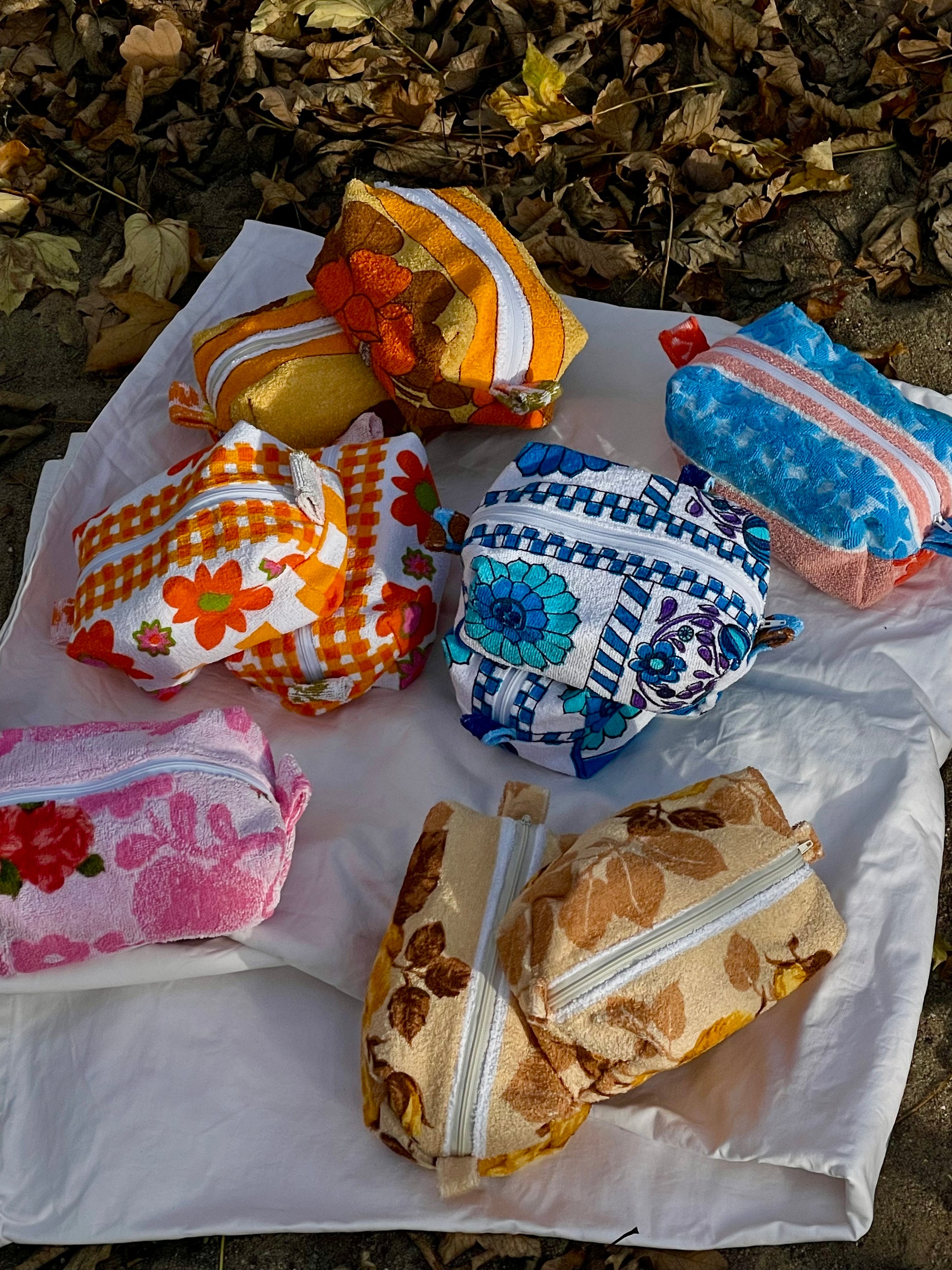 Alle Stoffe sind vorgewaschene Vintage-Materialien. Für Langlebigkeit empfehlen wir die Wäsche per Hand. Wenn du die Tasche in der Waschmaschine waschen möchtest, empfehlen wir die Wäsche in einem Wäschesack, um zu vermeiden, dass das Frottee in Kontakt mit scharfen Gegenständen kommt.