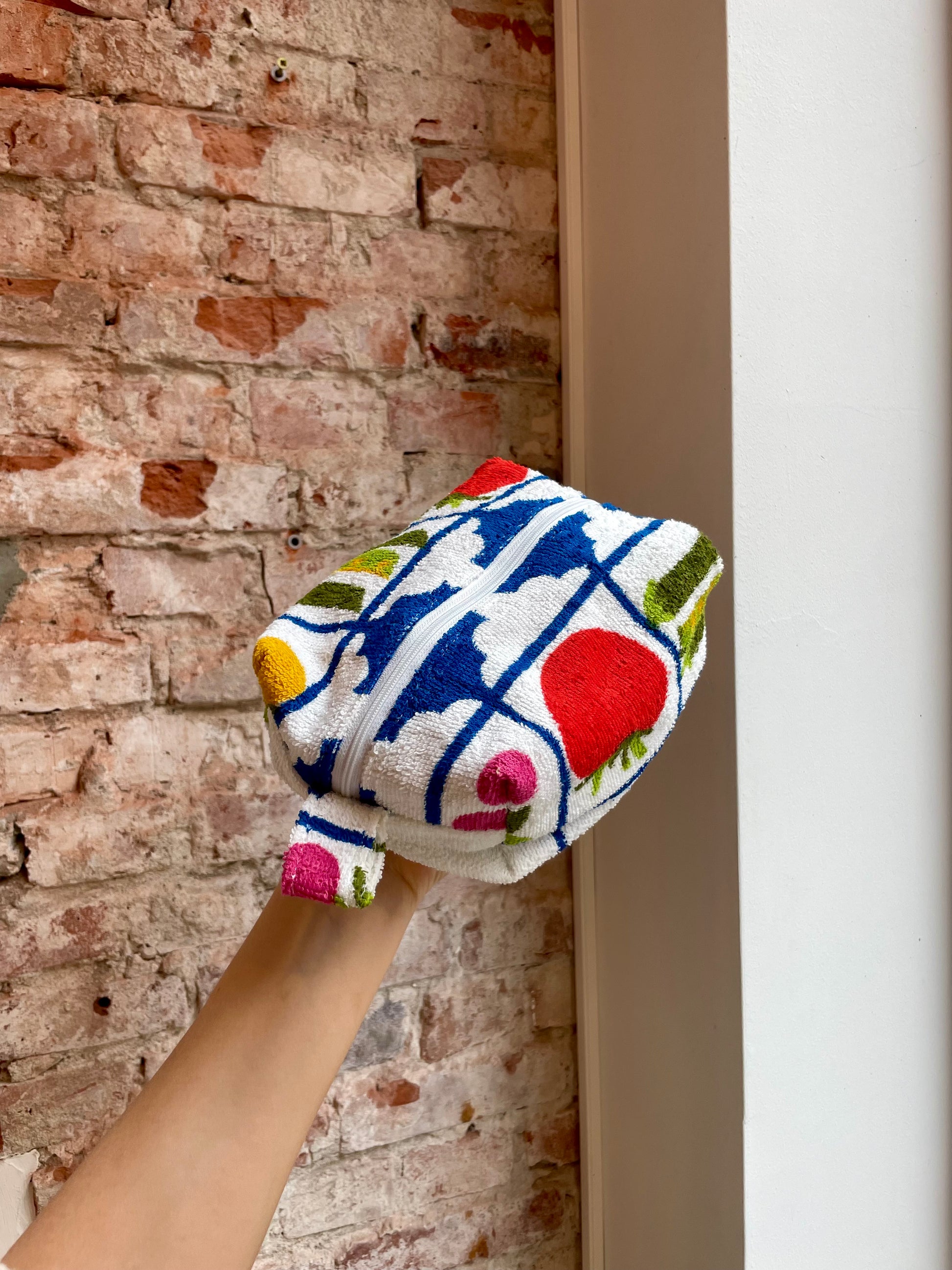 Alle Stoffe sind vorgewaschene Vintage-Materialien. Für Langlebigkeit empfehlen wir die Wäsche per Hand. Wenn du die Tasche in der Waschmaschine waschen möchtest, empfehlen wir die Wäsche in einem Wäschesack, um zu vermeiden, dass das Frottee in Kontakt mit scharfen Gegenständen kommt.